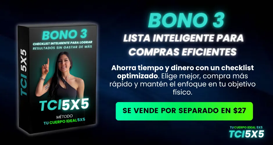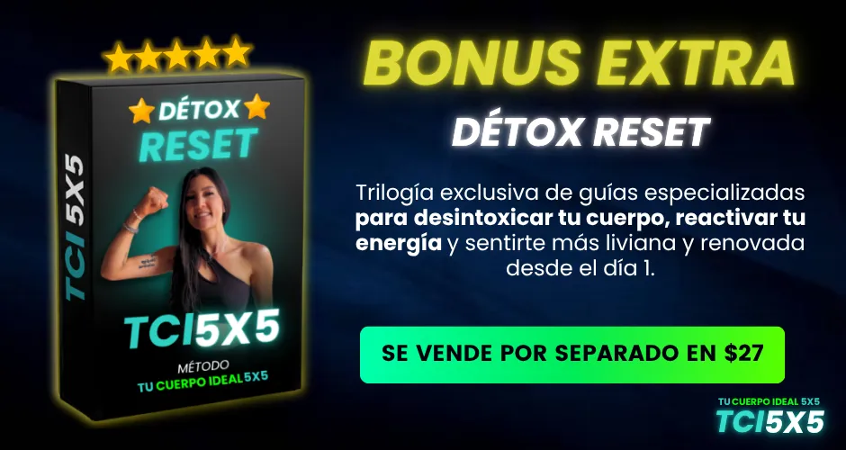 En este momento puedes obtener acceso completo al MÉTODO TCI 5X5 para tu Salud y Energía por solo $ 7